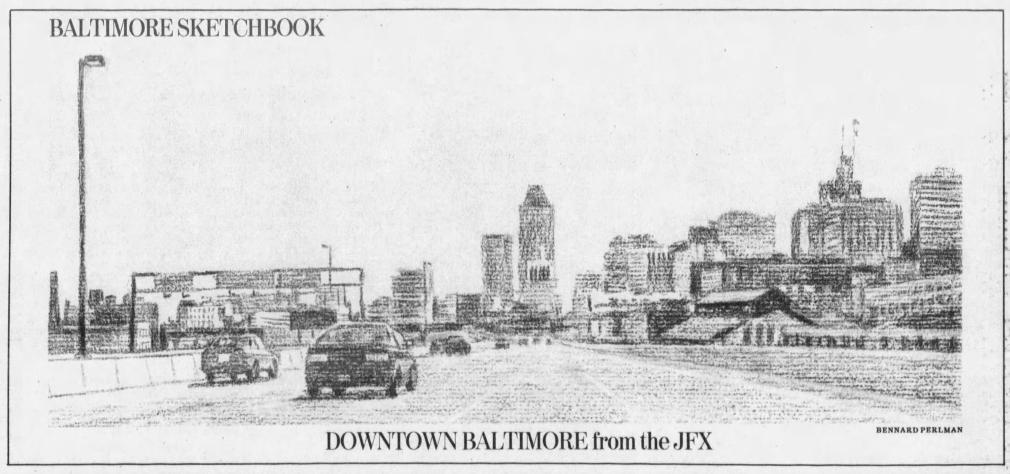We have a beautiful drawing of one of the most scenic parts of Baltimore, the, uh, Jones Falls Expressway.