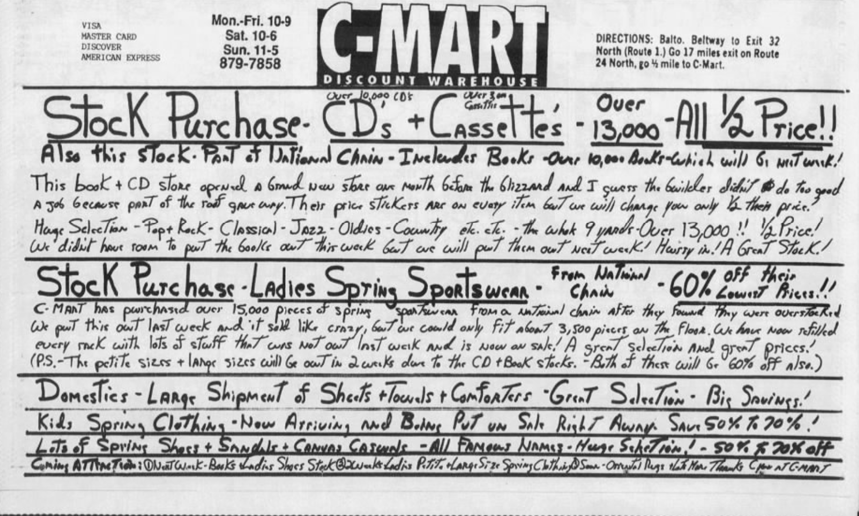 This was a massive ad (⅓ of a page) in the Sun today from C-Mart. Graphic design is obviously their passion, as is narrative storytelling. Since the handwriting is a little tough, here’s my favorite part.